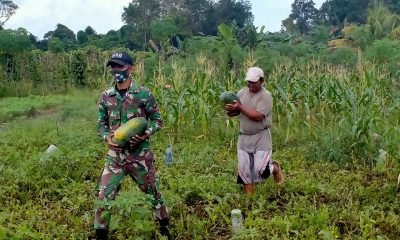 Satgas Pamtas Yonif 642/Kapuas Bantu Warga Temajuk Panen Buah dan Sayur
