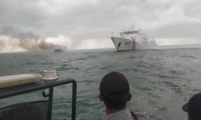 12 Juni 2022siber.news | KN. Pulau Dana-323 Bakamla RI melaksanakan pemadaman KM Bintang Surya yang terbakar di Perairan...