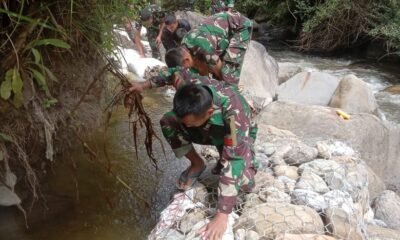 Bersama Masyarakat dan Para Santri, Satgas Yonif RK 751/VJS Perbaiki Irigasi Yang Rusak Akibat Banjir