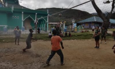 Tingkatkan Semangat Berolahraga, Satgas Yonif RK 751/VJS Ajak Generasi Muda Bermain Volly