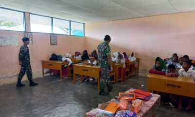 TNI Peduli Anak Papua, Satgas Yonif 126/KC Bagikan Perlengkapan Sekolah Kepada Siswa-Siswi di Perbatasan