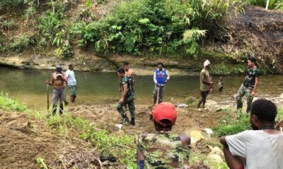 Membantu Masyarakat Perbatasan, Satgas Yonif 126/KC Bersihkan Irigasi di Pegunungan Bintang