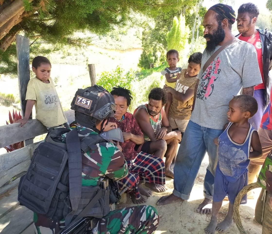 Lanny Jaya-Papua, Siber | Dalam menciptakan situasi wilayah agar tetap aman bukan hanya menempatkan aparat keamanan dengan persenjataan di wilayah tersebut, namun aparat keamanan juga harus bisa berinteraksi dengan baik terhadap masyarakat setempat seperti yang dilakukan oleh Satgas TNI Yonif RK 751/VJS.