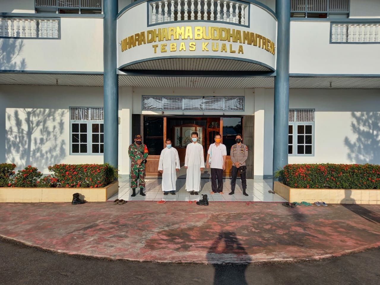 Sambas, Siber | Babinsa 1208-03/Tebas, Serda Ardi bersama Bhabinkamtibmas melaksanakan pengamanan peringatan Hari Raya Trisuci Waisak, bertempat di Wihara Dharma Budha Maytreya, Desa Tebas Kuala, Kecamatan Tebas, Kabupaten Sambas, Rabu (26/5/2021).