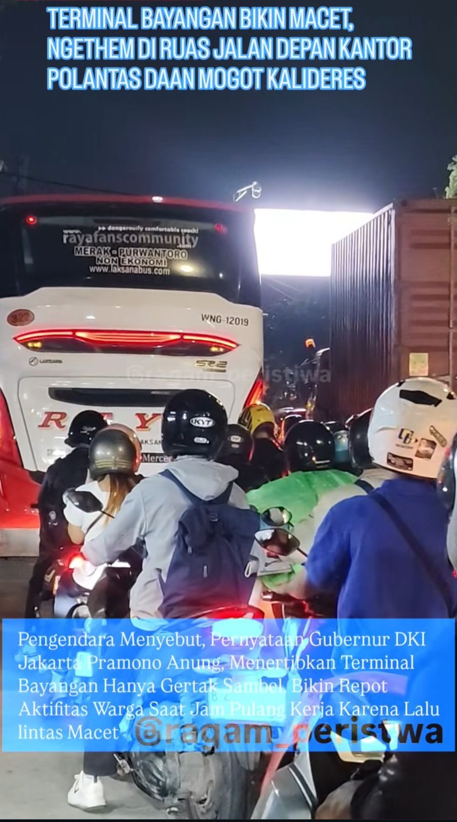 “Katanya mau menertibkan semua terminal bayangan, mana buktinya? Kenyataannya masih banyak dan tidak ada yang jera,” teriak salah satu pengendara sepeda motor di tengah kemacetan. Ia menyebut pernyataan Gubernur selama ini tak lebih dari sekadar gertak sambal.