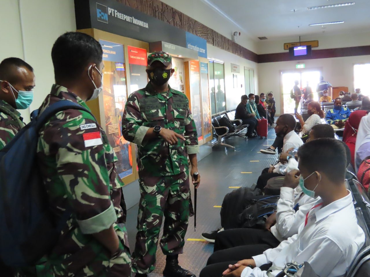 Ratusan warga Suku Kamoro terlihat memadati Bandara Mozes Kilangin. Mereka adalah para orang tua Casis Secata Prajurit Karier Gelombang I TA. 2021 yang mengantar dan menggantungkan harapan kepada anak-anak mereka yang sedang berjuang untuk menjadi prajurit terbaik Kodam XVII/Cenderawasih.