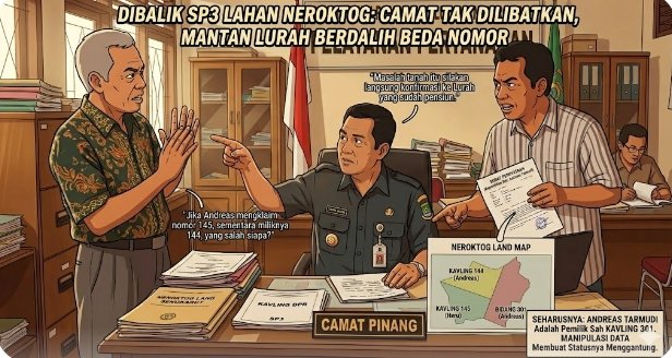 “Saya sebagai Camat tidak sama sekali dipanggil oleh polisi soal tanah itu,” ujarnya, yang memicu tanda tanya besar terkait validitas proses SP3 tersebut.