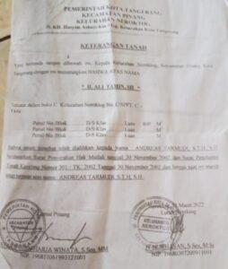 “Masalah tanah itu silakan langsung konfirmasi ke Lurah yang sudah pensiun, itu surat yang membuatnya,” ujar Camat Pinang saat memberikan keterangan. Ia terkesan enggan terseret lebih jauh dalam polemik administrasi yang kini menjadi sorotan publik tersebut.
