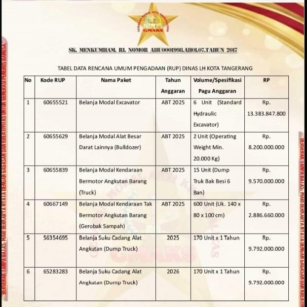 Masyarakat menanti keberanian DLH Kota Tangerang untuk membuka data rencana pengadaan tersebut secara gamblang. Jika tetap memilih bungkam, tudingan adanya praktik “main mata” dalam anggaran 2025-2026 akan semakin sulit untuk dibantah oleh pihak dinas.