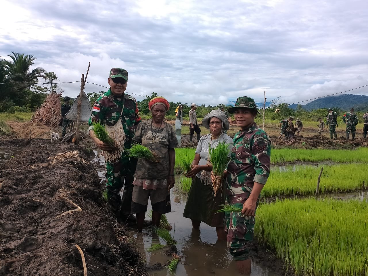 Keerom, siber.news | Guna mendukung program ketahanan pangan di wilayah Papua khususnya Kabupaten Pegunungan Bintang, Satgas Yonif 126/KC Pos Batom membantu para petani menanam padi di Kampung Batom, Distrik Batom, Kabupaten Pegunungan Bintang.