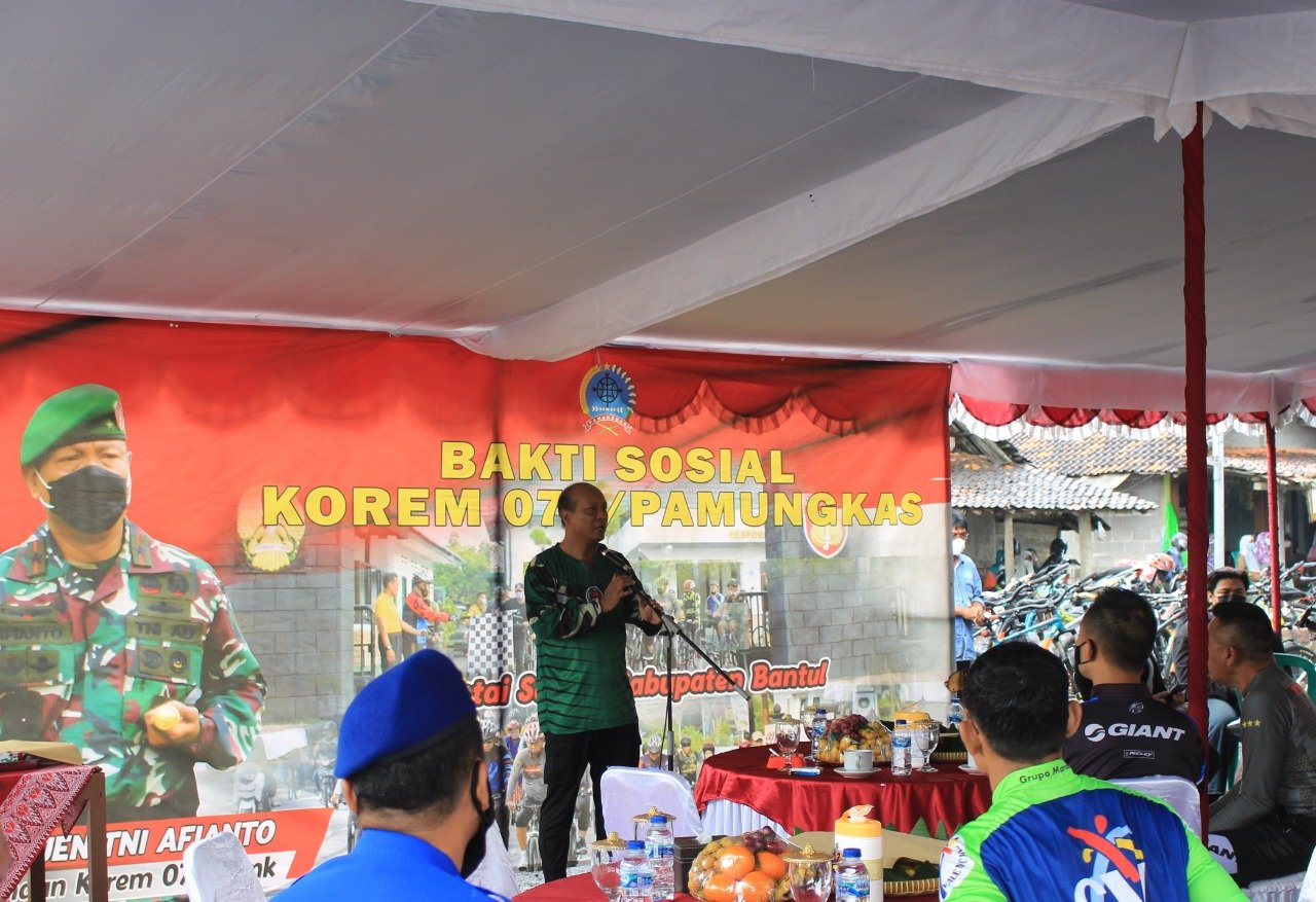 Bantul, Siber | Guna mengetahui situasi yang ada di wilayahnya Danrem 072/Pamungkas Brigjen TNI Afianto melaksanakan olahraga bersepeda santai (gowes) dan Bakti Sosial (Baksos) di Pantai Samas, Bantul, Kamis, (20/1/2022).