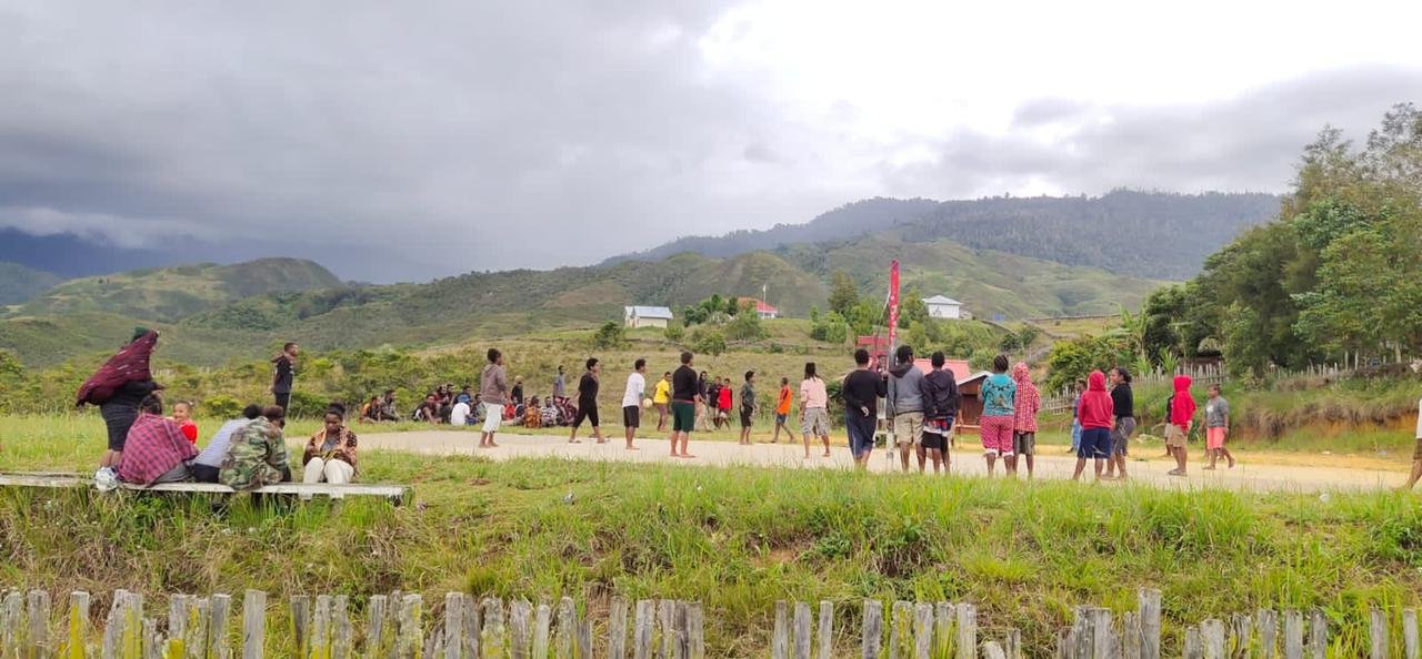 Jayawijaya, Siber | Guna menjalin keakraban dan kebersamaan dengan masyarakat di Papua Pegunungan, Satgas Yonif Raider 321/GT/13/1 Kostrad Pos Napua menggelar olahraga bersama Bola Voli dengan masyarakat Kampung Napua, Distrik Napua, Kabupaten Jayawijaya, Papua.