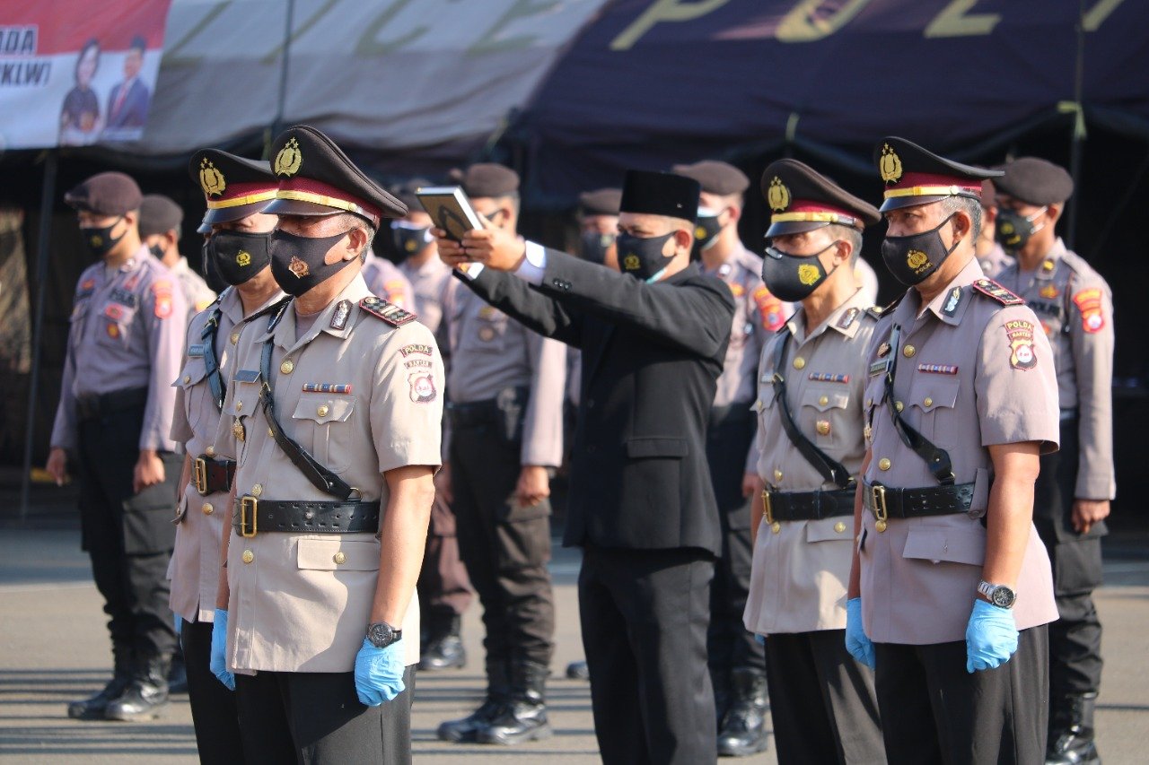 PANDEGLANG – Kepala Kepolisian Resor Pandeglang AKBP Belny Warlansyah memimpin upacara Serah Terima Jabatan (Sertijab) Kasat Binmas dan Kasat Tahti, Kabagops dan Kapolsek Picung, di halaman Mapolres Pandeglang, Kamis (23/9/2021).