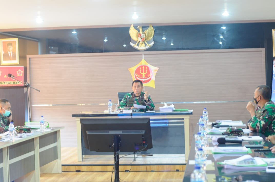 Tanjung Pinang, siber.news,- Kepala Staf Kogabwilhan I Mayjen TNI Syafruddin, S.E., M.M., M.Tr. (Han) membuka sekaligus memimpin rapat pada paparan draf Rencana Operasi Kotamaops jajaran Kogabwilhan I di Ruang Rapat Makogabwilhan I, Jalan MT Haryono km 3 Tanjung Pinang, Senin (9/11/2020).