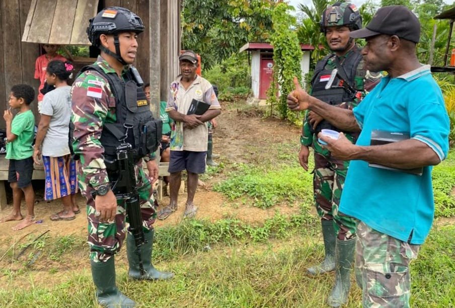 “Sebagai wujud perhatian Satgas, kami bagikan warga pakaian layak pakai, bahan makanan dan kesehatan kepada warga Jifangry,” tambah Danpos.