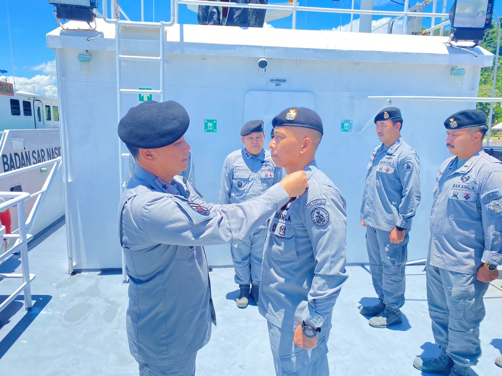 Serei, Siber | Kepala Pangkalan Bakamla Minahasa berganti. Hal tersebut dikukuhkan dalam upacara pelantikan Kolonel Bakamla Tatang, CHRMP diatas KN Gajah Laut-404, kemarin.