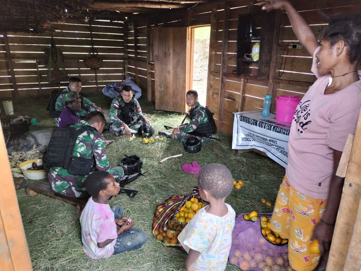 Mamberamo Tengah, Siber | Guna lebih dekat dengan warga dan mengetahui kondisi yang ada di Lapangan, Satgas Yonif Raider 142/KJ terus melakukan kegiatan Teritorial dengan melakukan Komunikasi Sosial ke Rumah salah satu tokoh agama bernama Bapak Ilang Gombo, bertempat di rumah beliau di Distrik Eragayam, Kabupaten Mamberamo Tengah, Provinsi Papua Pegunungan, Senin (13/02/2023).