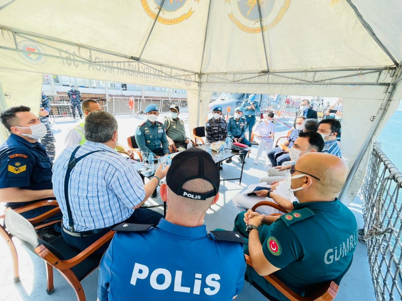 Sebelum meninggalkan kapal, Kolonel Inf Sjaiful Thalib yang datang bersama rombongan sempat membicarakan beberapa hal penting bersama Dansatgas MTF TNI Letkol Laut (P) Abdul Haris.