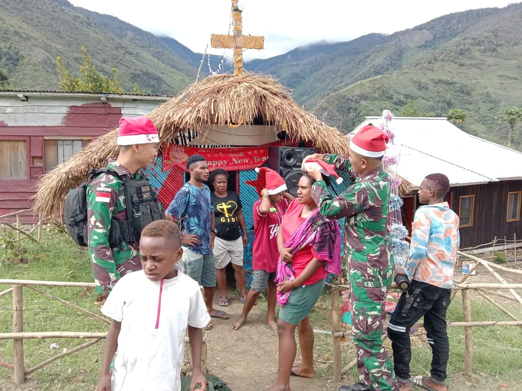 Kumpul Natal Ala Satgas Pamtas Yonif Raider 142/KJ di Papua Pegunungan