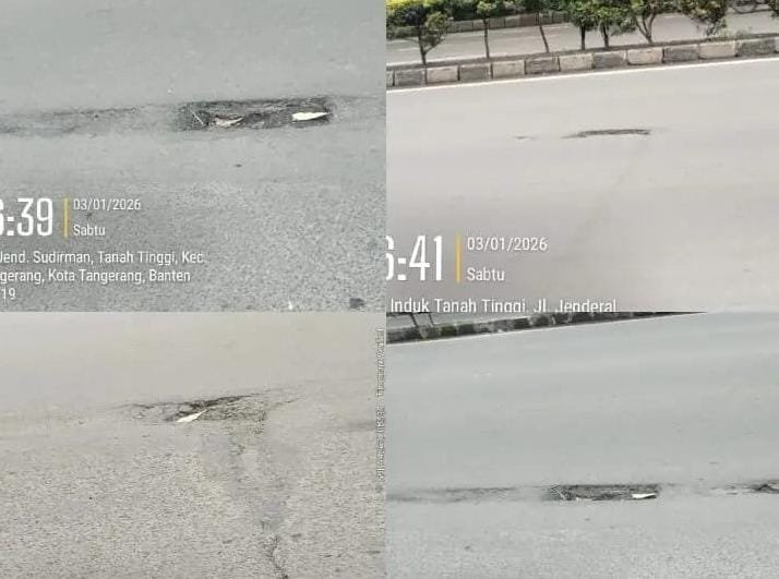 siber.news|Kondisi infrastruktur di Jalan Jenderal Sudirman, kawasan Tanah Tinggi, kian membusuk. Lubang menganga yang berada tak jauh dari lampu merah Puspem Kota Tangerang setelah perlintasan rel kereta api kini bukan lagi sekadar kerusakan aspal, melainkan ancaman nyata yang siap merenggut nyawa pengendara.