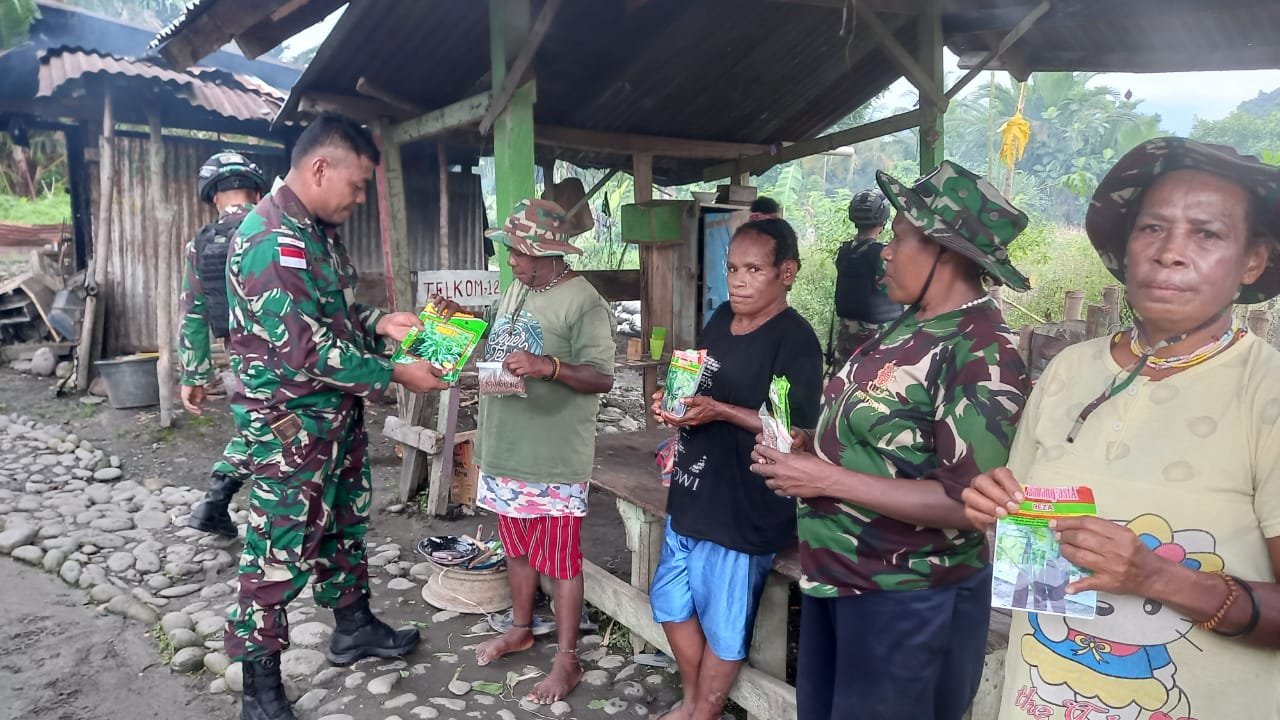 Keerom, siber.news | Dalam rangka meningkatkan ketahanan pangan warga perbatasan, personel Satgas Pamtas RI-PNG Yonif 126/KC Pos Batom menyalurkan bantuan berupa bibit padi dan jagung kepada warga Kampung Batom, Distrik Batom, Kabupaten Pegunungan Bintang.