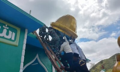 Satgas Pamrahwan Yonif RK 751/VJS Bersama Masyarakat Laksanakan Pemasangan Kubah Masjid