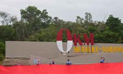Danrem 174 Merauke Bentangkan Bendera Merah Putih Raksasa Di Titik “0” KM Sota Merauke