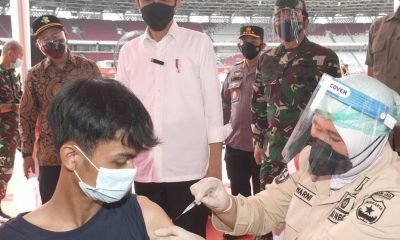 Panglima TNI Dampingi Presiden RI Tinjau Pelaksanaan Serbuan Vaksinasi di GBK Senayan