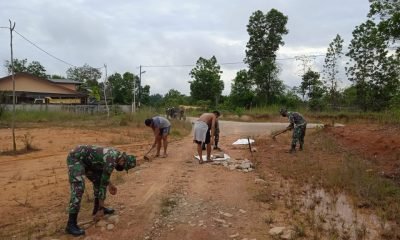 Goyong Royong Perbaiki Jalan, Personel Batalyon Infanteri 642/Kapuas Laksanakan Karya Bakti Perbaiki Jalan