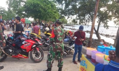 Koramil 05/Pemangkat Bagikan Masker Gratis di Pantai Sinam