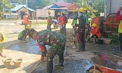 Bukti Kemanunggalan TNI-Rakyat, Babinsa Koramil 01Laksanakan Karya Bakti Cor Jalan