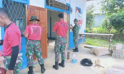 Kompi C Yonif 645/GTY Bengkayang Laksanakan Kerja Bakti Di Gereja GKPKB