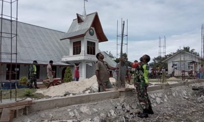 Demi Kenyamanan Beribadah, Babinsa Kodim Biak Numfor Bantu Warga Bangun Pagar Gereja