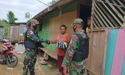 TNI Berbagi Sembako Kepada Masyarakat Perbatasan Di Papua