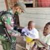 Prajurit TNI Yonif 131/Braja Sakti Bagikan Kaos dan Coklat Kepada Anak-Anak Papua