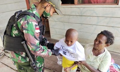 Prajurit TNI Yonif 131/Braja Sakti Bagikan Kaos dan Coklat Kepada Anak-Anak Papua