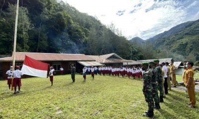 Tumbuhkan Nasionalisme, Satgas TNI Latih Upacara Penaikkan Bendera Bersama Guru dan Murid