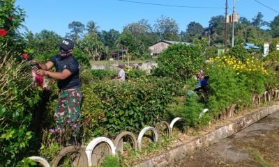 Program Jumat Bersih, Satgas Yonif 642 Bersama Masyarakat Bersihkan Lingkungan Dusun dan Sekolah