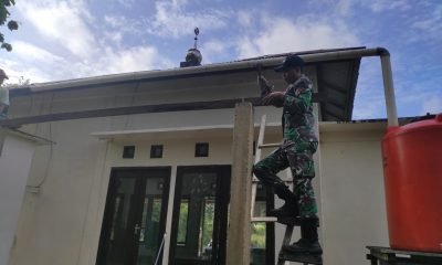 Kompak Dengan Warga, Satgas Yonif 642 Laksanakan Karya Bakti Perehaban Surau