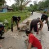 Berikan Rasa Nyaman Bagi Pengendara, Satgas Pamtas Yonif 642 Bersama Masyarakat Perbaiki Jalan Desa