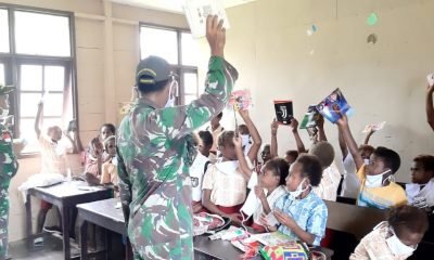 Dukung Pendidikan, Satgas Yonif MR 413 Kostrad Bagikan Buku Tulis Kepada Siswa Perbatasan RI-PNG