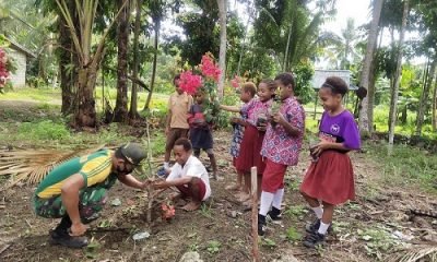 Bangun Karakter Sejak Dini, Satgas Yonif MR 413 Kostrad Ajarkan Siswa Perbatasan Tanam Bunga