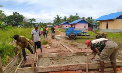 Satgas Pamtas Yonif 125/SMB Kerja Bakti Bersama Warga Kampung Toray Dalam Pembuatan Gorong-Gorong