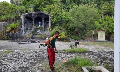 Bersama Masyarakat, Satgas Yonif MR 413 Kostrad Bersihkan Tempat Wisata Religi Goa Bunda Maria di Distrik Arso