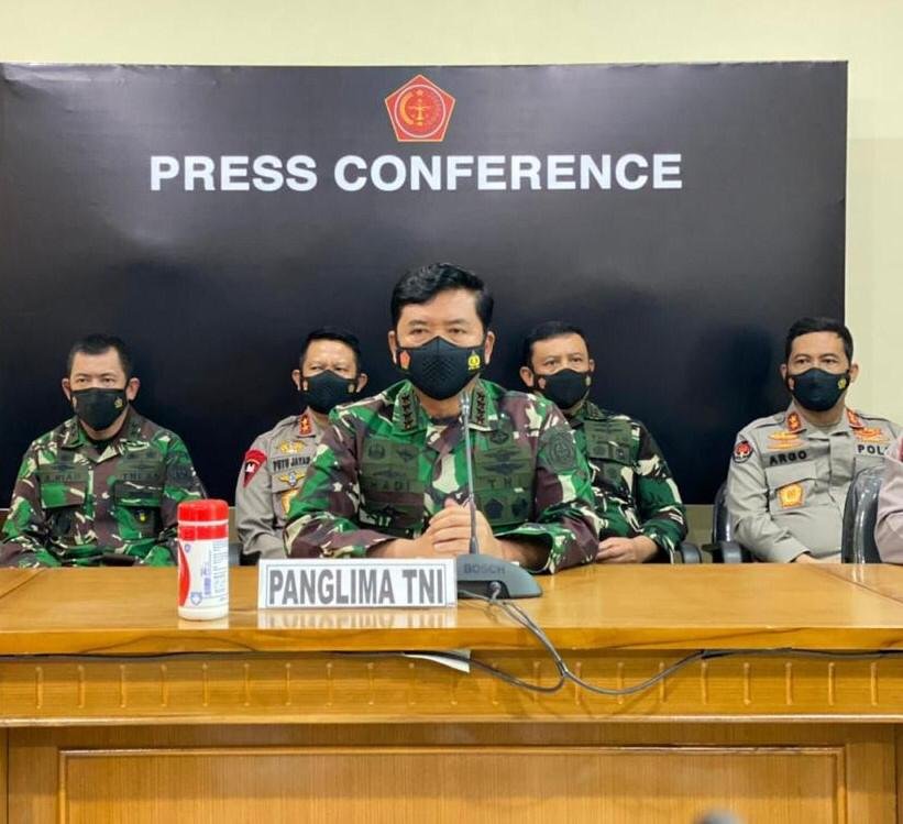 Hal tersebut disampaikan Panglima TNI Marsekal TNI Hadi Tjahjanto, S.I.P. didampingi Kasal Laksamana TNI Yudo Margono, S.E., M.M. dan Kapolri Jenderal Polisi Drs. Listyo Sigit Prabowo, M.Si., saat menggelar konferensi pers terkait perkembangan KRI Nanggala-402, bertempat di Base Ops Lanud I Gusti Ngurah Rai, Denpasar, Bali, Minggu (25/4/2021).