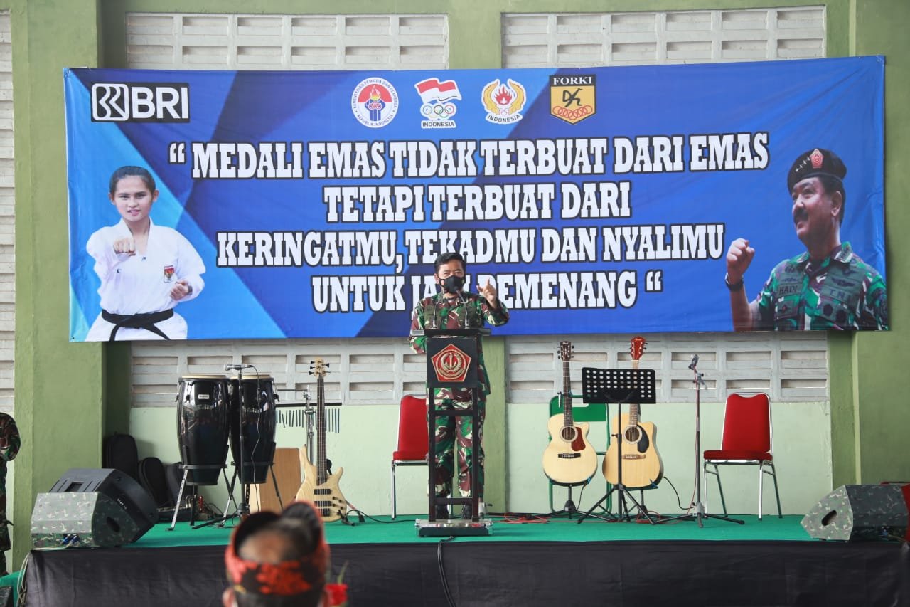 Dalam kesempatan tersebut, Panglima TNI menyampaikan bahwa Pelatnas yang berada di GOR Bali ini dipersiapkan untuk menghadapi dua event internasional yang diawali dengan Pra-Olimpiade di bulan Juli 2021, untuk dapat lolos Olimpiade pada bulan Agustus 2021 mendatang termasuk Sea Games dengan target 5 medali emas.