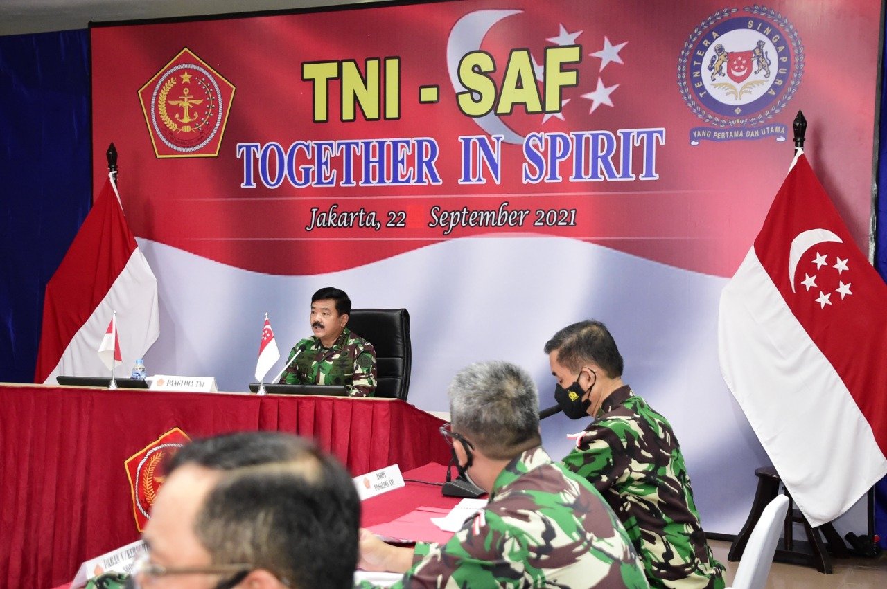 Mengawali kata pembukanya, Panglima TNI mengucapkan selamat Hari Nasional Singapura yang jatuh pada tanggal 9 Agustus yang lalu sekaligus mengucapkan terima kasih yang sebesar-besarnya atas bantuan dari Pemerintah Singapura dan Angkatan Bersenjata Singapura (SAF), berupa dukungan alat kesehatan yang telah diterima 9 dan 14 Juni yang lalu untuk menanggulangi pandemi Covid-19 di Indonesia.