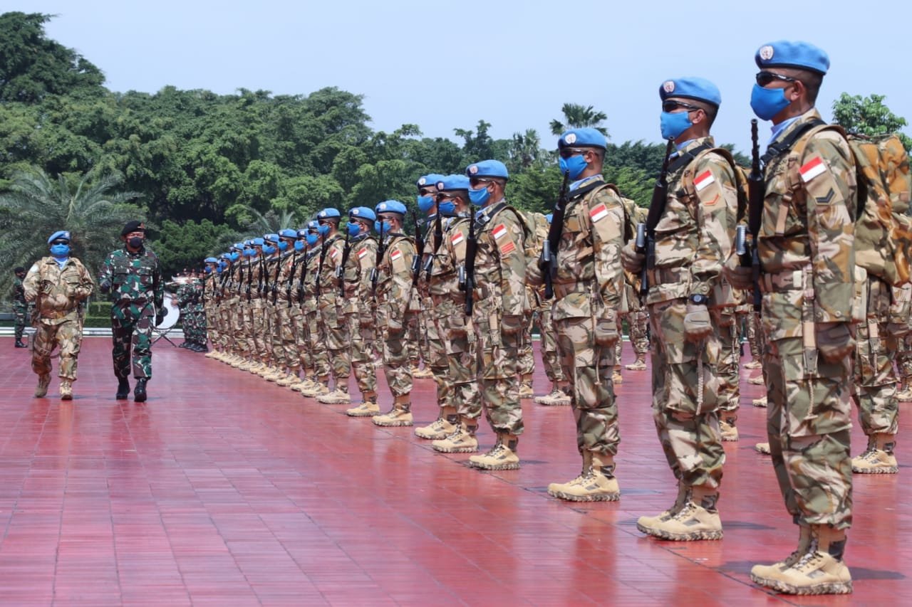 Demikian sambutan tertulis Panglima TNI Marsekal TNI Dr. (H.C.) Hadi Tjahjanto, S.I.P., yang dibacakan oleh Kepala Staf Umum (Kasum) Letjen TNI Ganip Warsito, S.E., M.M., dalam upacara pemberangkatan satgas MONUSCO T.A 2021 di Plaza Mabes TNI, Cilangkap, Jakarta, Selasa (23/2/2021).