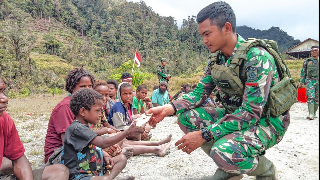 Peduli Dengan Sesama, Satgas Yonif Raider 321 Kostrad Berbagi Makanan Pada Masyarakat di Pedalaman Papua