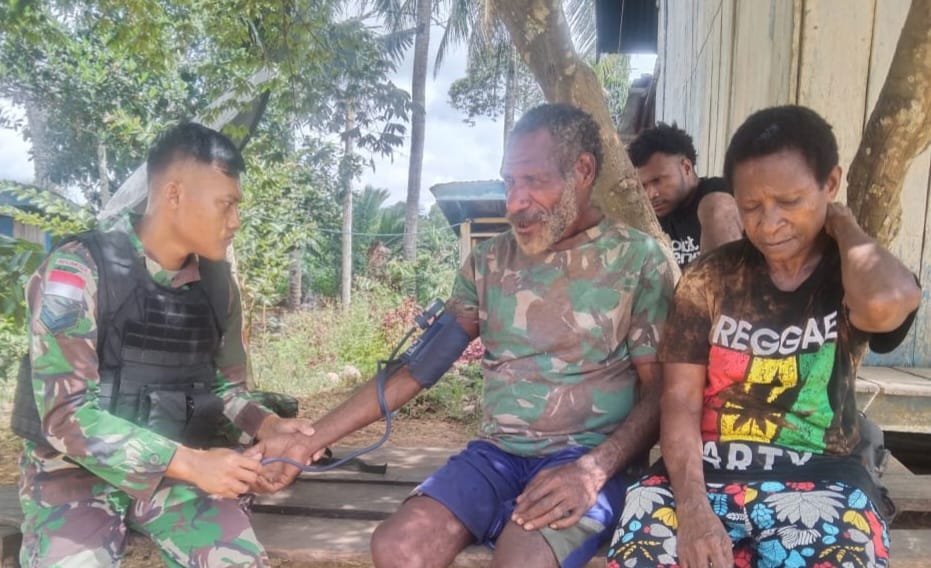 Peduli Kesehatan Warga, Satgas Yonif 143/TWEJ Kunjungi Pemukiman di Perbatasan RI-PNG